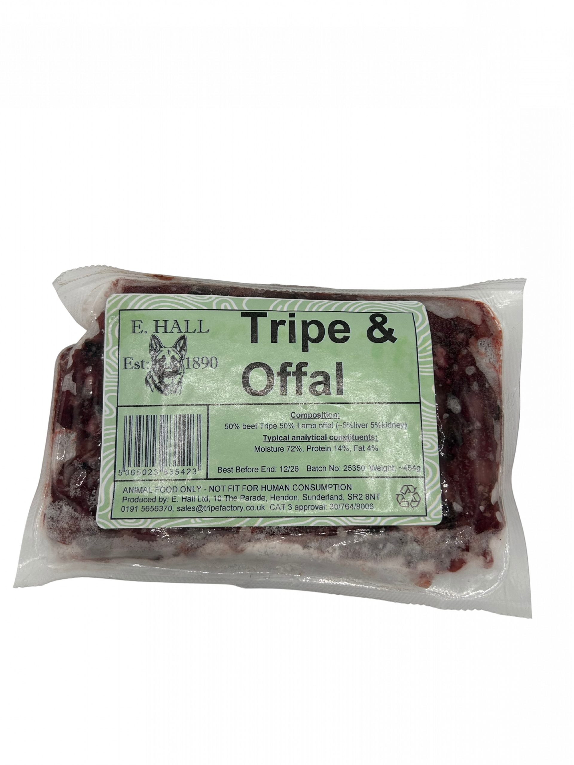 Offal refers to the internal organs of an animal, here at E. Hall Ltd our offal contains: liver, lung, heart, spleen and kidney all blended into one nutritional powerhouse.